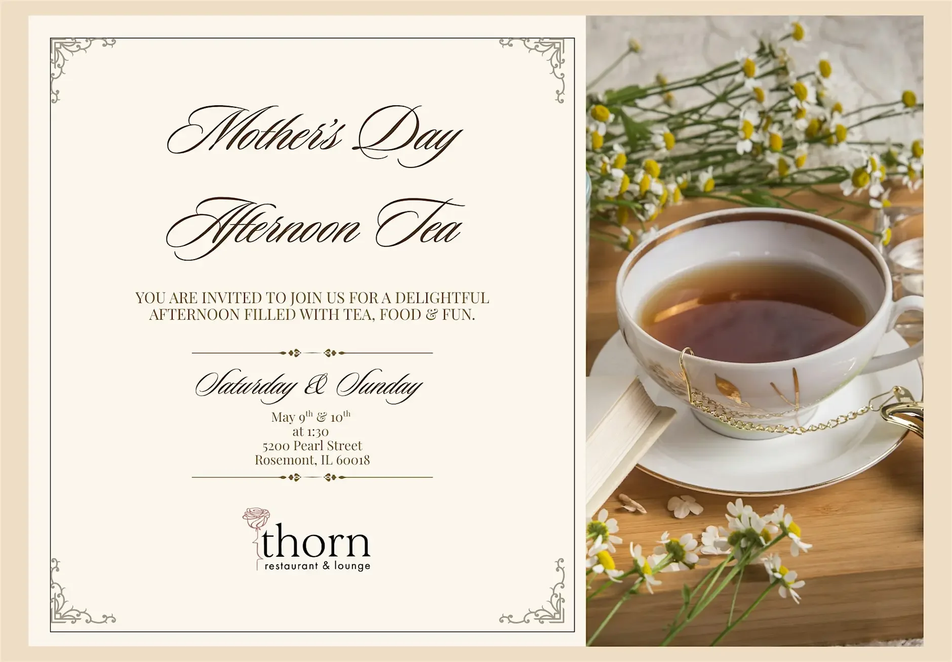 Celebrate Mother's Day with a decadent afternoon tea, May 9th & 10th at 1:30pm.