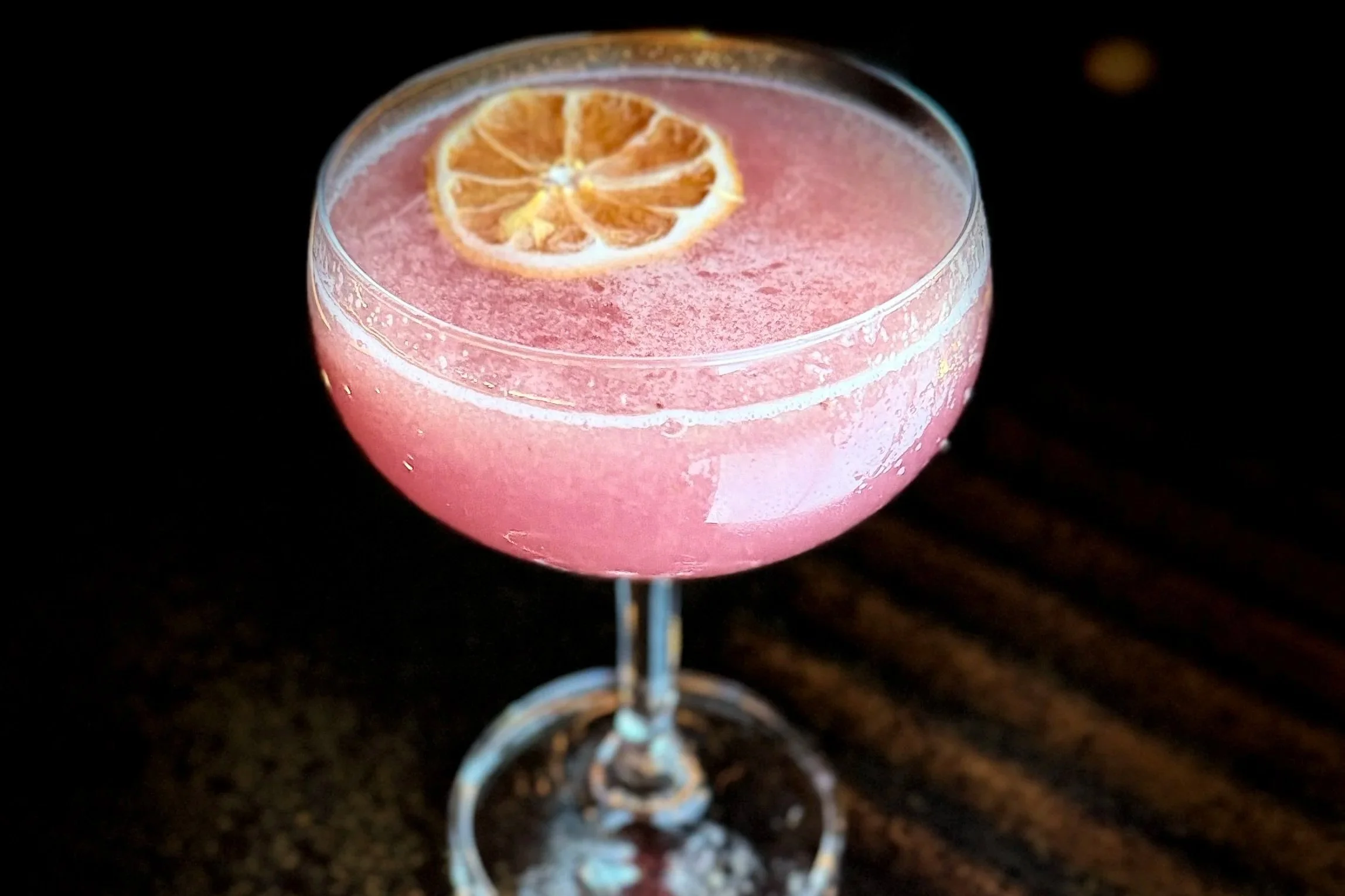 Fresh muddled blueberries, house-made lavender syrup, St. Germaine Elderflower liqueur, fresh lime juice, Bacardi white rum, Bitter Truth Crème De Violet!