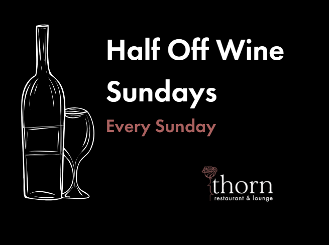 Cheers to a new week! Join us for Sunday dinner and enjoy bottles of wine at half price. It's the perfect way to relax and celebrate the start of a fresh week with great food, fine wine, and wonderful company.